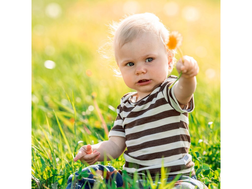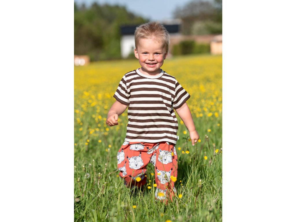 Pruhované tričko v kombinaci hnědá/bílá. Nepřekonatelné do kočárku, nosítka i autosedačky!